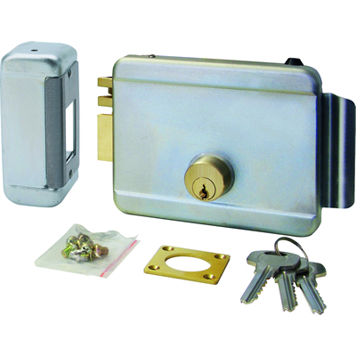 Vorgespanntes Elektrotürschloss 12V zum Aufschrauben auf das Torblatt. Empfohlen ab 3 m Flügellänge.