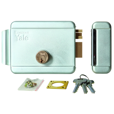 Vorgespanntes Elektrotürschloss 12 V zum Aufschrauben auf das Torblatt. Empfohlen ab 3 m Flügellänge.