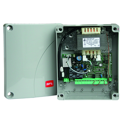 - Haupt-Merkmale: abnehmbare Anschlußblöcke, Programmieren mit dip-Schaltern und Druckknöpfen, eingebauter 2-Kanal-Empfänger, Quetschschutz, Verzögern beim Öffnen und Schließen und elektronisches Selbstlernen, D-Track Drehmoment-Steuersystem