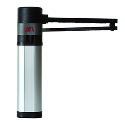 Elektromechanischer Drehtorantrieb 0,2 kW / 230 V mit Gelenkarm und Rutschkupplung. Für Torflügel bis zu 1,80 m und einem Torgewicht von max. 200 kg. Ideal zur Installation an schmalen Pfosten (wenn der Abstand zwischen dem Drehpunkt des Tores und der Innenkante des Pfostens max. 21 cm ist) und zur Vermeidung von Nischen bei großen Pfeilern. Benötigt Bodenendanschläge in Öffnung und Schließung und ein Elektroschloß zur Blockierung.