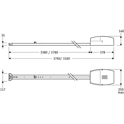 Selbsthemmender Antriebskopf für Sektionaltore sowie Schwingtore mit Führungen und Federausgleich bis zu 120 kg Torgewicht. EOS 120 ist kombinierbar mit 4 Kettenprofile kompinierbar zur individuellen Zusammenstellung des Garagentorantriebes. 24 V-Motor mit selbstlernender elektronischer Kraftbegrenzung. Sanftanlauf und Softstopp. Installationsfreundlich, da vormontiert. Eingebaute Steuerung VENERE D mit Rolling-Code-Empfänger. Kompatibel mit dem Übertragungsprotokoll EELINK. Inkl. einem 4-Kanalhandsender Mitto 4. Eingebaute Steuerung mit Selbstlernfunktion für Öffnungs- und Schließkraft. Encoder und das exklusive D-Track Kraft-Management System für sichere Installation unter allen Bedingungen.