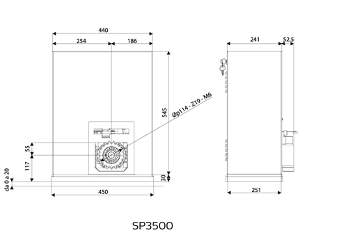 Schiebetorantrieb für gewerbliche Nutzung. Motor 550 W, 3x 400 V, max. Torgewicht 3500 kg. Laufgeschwindigkeit 10,5 m/min. Die Steuerung SIRIO TEL mit selbstüberwachendem Betriebsrelais ist bereits eingebaut. Inklusive Wendeschützschaltung. Selbstüberwachende Steuerung, entspricht den Normen EN 12453 und EN 12445.