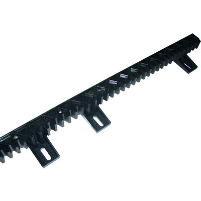 Kunststoffzahnstange 22x22 mm, Länge 1 m. Befestigungslaschen unten.