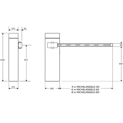 Elektromechanische 24 V-Schranke mit einer max. Absperrbreite von 6 m. Komplett mit Steuerung LIBRA C MV, Schrankenbaum und Schrankenbaumhalter. Schranke wird als linksseitige Schranke ausgeliefert, kann aber mit wenigenHandgriffen auf rechtsseitige Montage